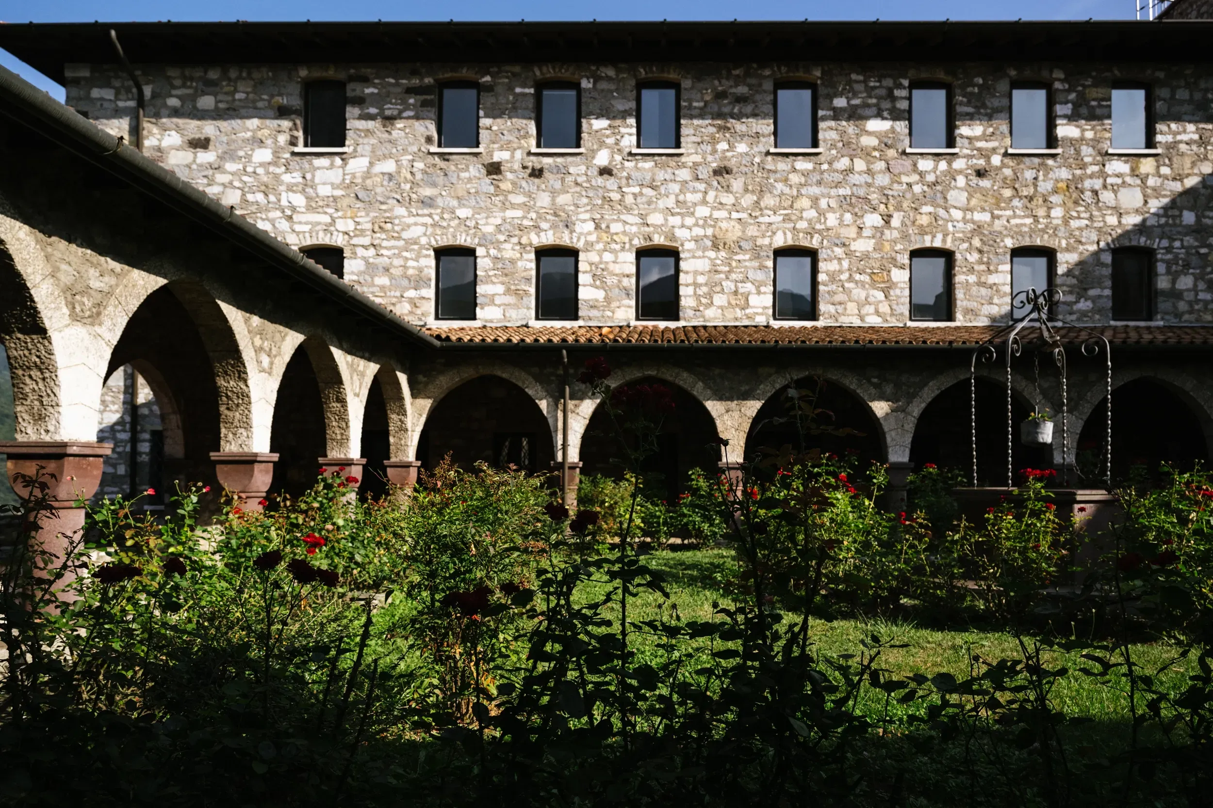 I due chiostri interni e il vasto parco esterno che circonda la struttura sono spazi di silenzio e contemplazione con la maestosa vista sulla Valle Camonica.